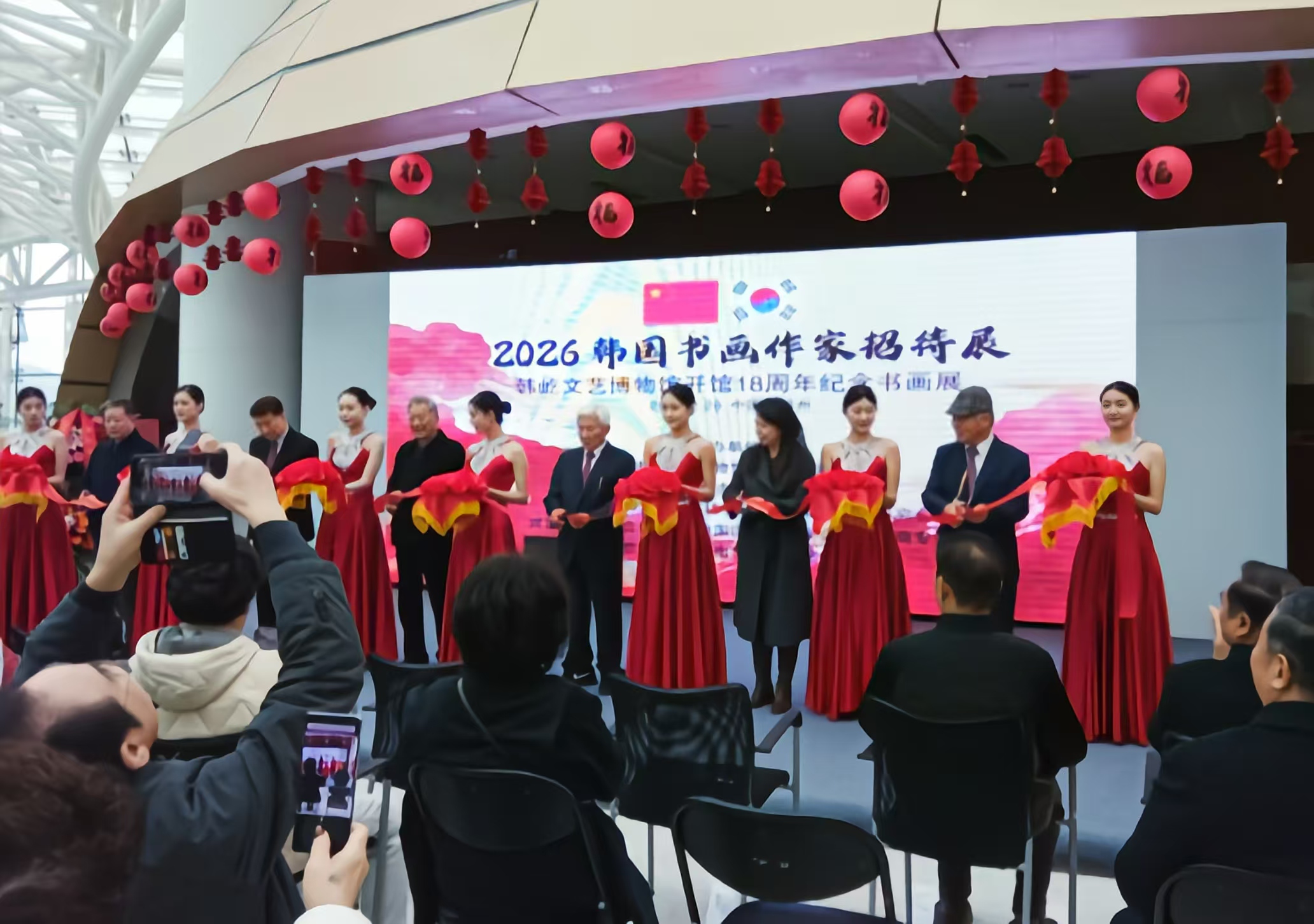最后,中韓嘉賓孫泉碭、許由、田凱、呂劍、李良炯和韓慶錫欣然為此展剪彩。