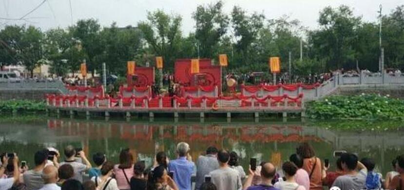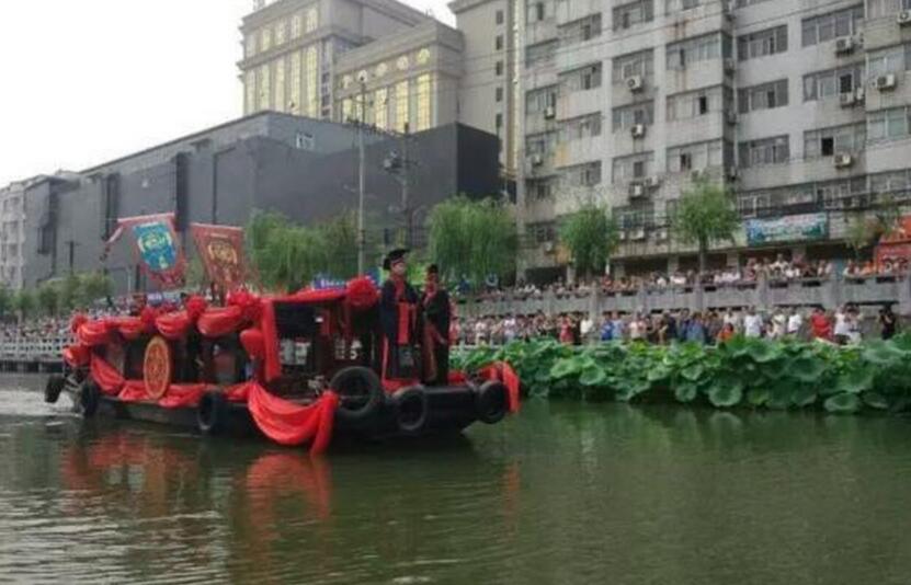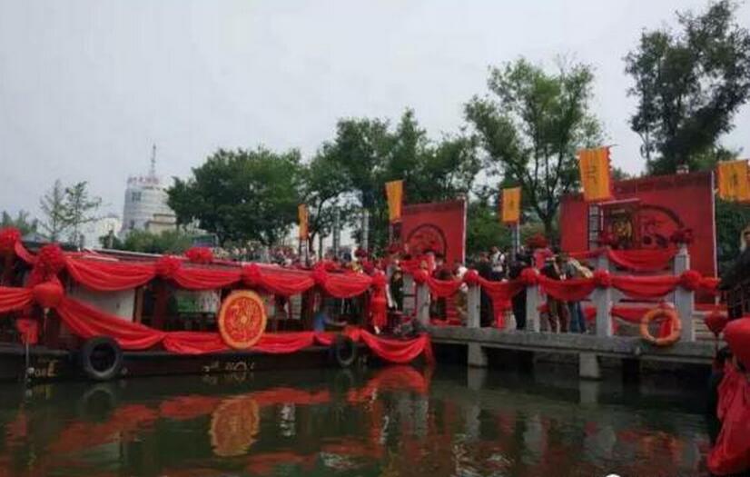 6月25日上午,一場(chǎng)別致的漢服水上婚禮在護(hù)城河上演。