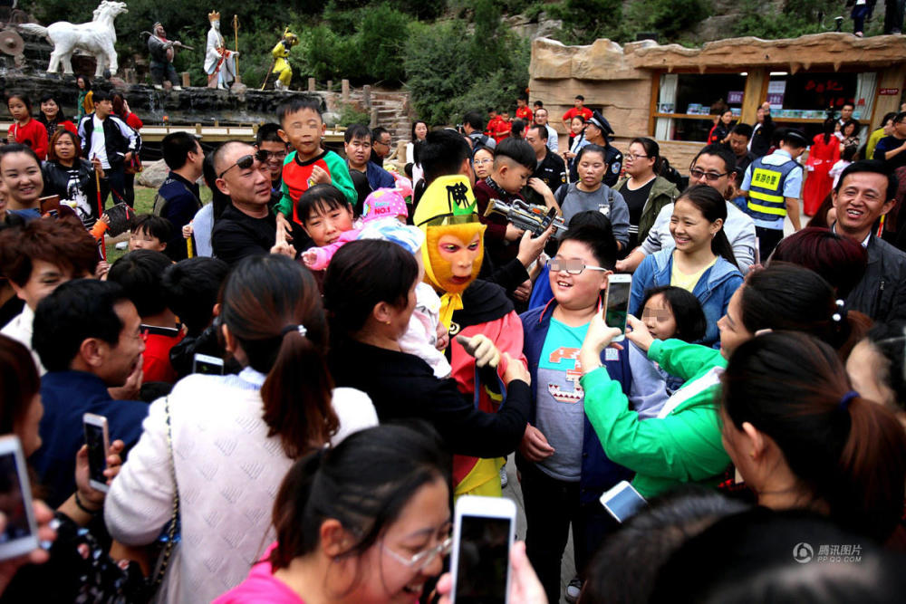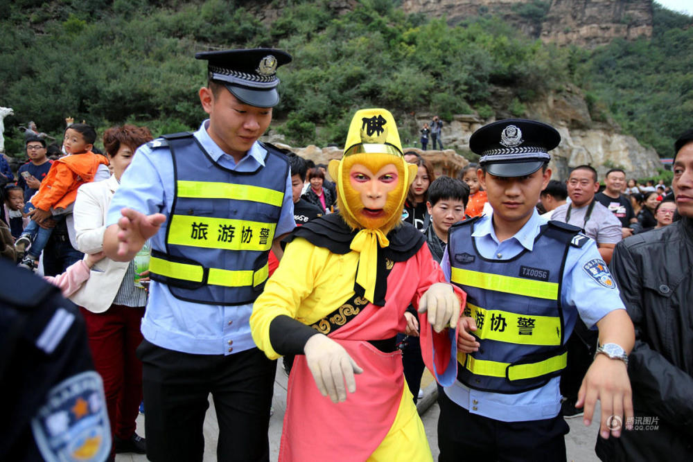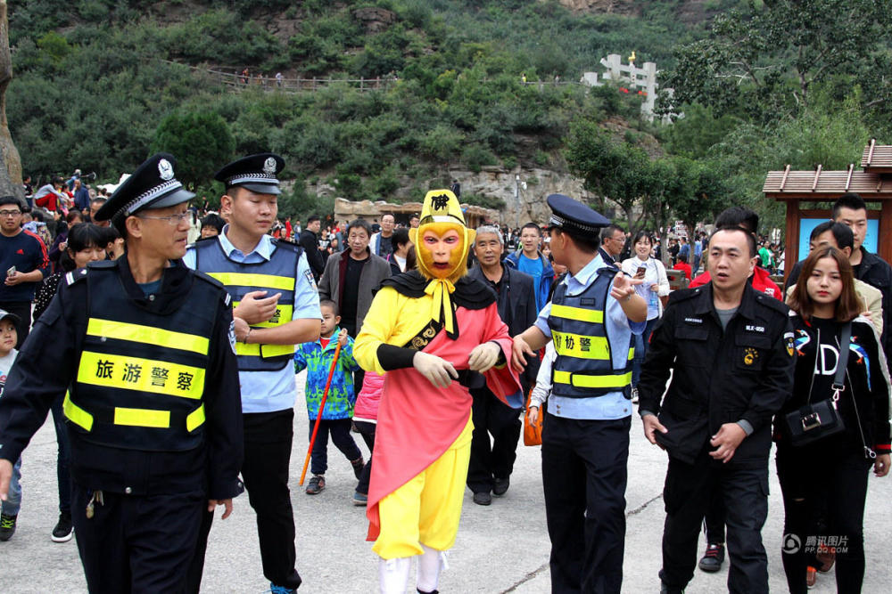 10月6日,河南濟源五龍口,曾因開大巴被交警拿住而意外走紅網(wǎng)絡的“孫大圣”遭上千游客圍追堵截,男女老少爭相求合影,一時間失了“神通”難以脫身,導致無法按時上場演出,只好求助旅游警察前來解圍。