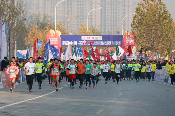 11月26日上午,2017鄭州炎黃國際馬拉松賽在鄭州市惠濟(jì)區(qū)碧源月湖公園準(zhǔn)時鳴槍開跑。本屆炎黃馬拉松以“千年炎黃情,萬眾馬拉松”為主題,以弘揚中華傳統(tǒng)文明為宗旨,是國內(nèi)最具中華文明特色文化的馬拉松賽事之一。比賽設(shè)有全程、半程馬拉松和5公里小馬拉松3個競賽項目,其中全、半程項目今日早上8點鳴槍,5公里小馬拉松項目今日上午9點鳴槍。參賽選手中包括了埃塞俄比亞、肯尼亞、蒙古等國家的著名運動員。來自世界各地的萬名馬拉松選手在滔滔黃河之畔暢跑,一飽華夏文明起源地的特色風(fēng)貌。