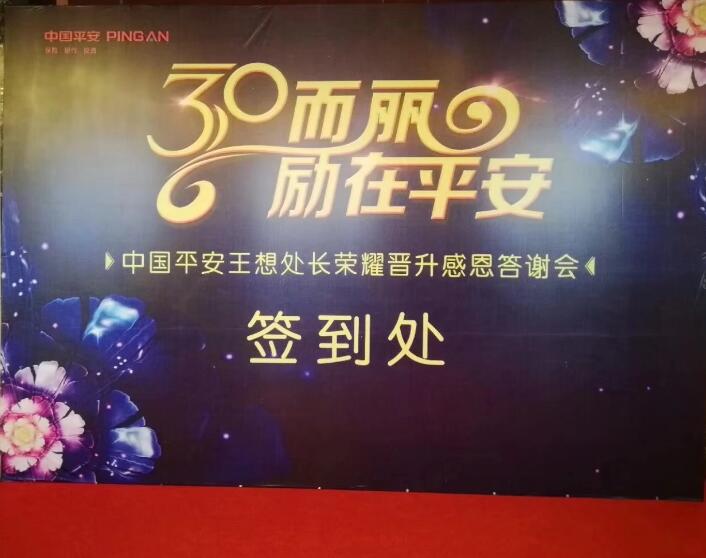 12月4日晚上6點(diǎn)30分,中國(guó)平安王想處長(zhǎng)榮耀晉升感恩答謝會(huì)在鄭州喜來(lái)登大酒店圓滿成功結(jié)束。