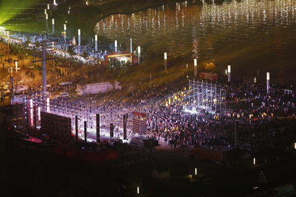 意義非凡的跨年時(shí)光絕不可辜負(fù),為能使沒有機(jī)會親臨現(xiàn)場的廣大網(wǎng)友感受燈光秀的震撼,大河網(wǎng)記者自2017年12月31晚8時(shí)左右便奔赴現(xiàn)場挑選絕佳的拍攝位置,4個(gè)多小時(shí)的奔波與寒冷只為讓你收到燈光映照下的新年祝福。十多分鐘的節(jié)目雖然短暫,但新年的祝福已經(jīng)伴隨那無數(shù)燈光照亮每個(gè)角落,傳遞到所有人身上,2018將全新起航!