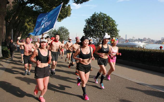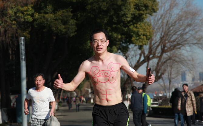 2018年1月13日,江蘇省南京市,清晨八點多,南京氣溫零下3度,近百名健身愛好者脫去厚重的外套,身著泳衣、短褲等環(huán)玄武湖進(jìn)行“光豬跑”,通過獨特的方式迎接即將到來的農(nóng)歷新年,也是向人們倡導(dǎo)親近自然、積極健身的健康生活方式。