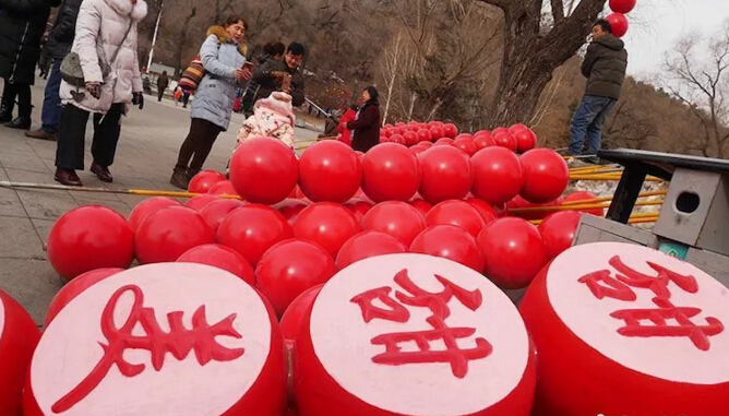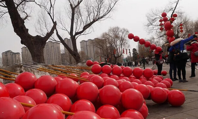 2月22日,吉林市北山公園里,長2.5米的巨型“糖葫蘆”成了市民新春“爭搶”的目標。紅彤彤的“糖葫蘆”看著很誘人,圍觀的市民要想捧起,還頗費些力氣。原來,這50根“糖葫蘆”是用泡沫做的,外表被漆成紅色,中間用一根長長的鐵管串起來,擺放在雪地上!疤呛J”中看不中吃,但卻成為市民拍照青睞的道具。