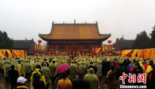 當(dāng)日的淮陽(yáng)太昊陵龍旗招展,古樂悠悠。早6時(shí)27分,萬(wàn)眾矚目的傳統(tǒng)祭拜盛會(huì)“2018(戊戌)年公祭人文始祖太昊伏羲氏大典”在統(tǒng)天殿前如期舉行。海內(nèi)萬(wàn)名羲皇子孫齊聚于此,攜手尋根,一同祭拜人祖伏羲氏,為中華祈福,為人類祈福。 儀式現(xiàn)場(chǎng),全場(chǎng)肅立,敬奏祭樂。撞鐘擊鼓各9響,象征中華民族傳統(tǒng)中的最高禮數(shù);鳴禮炮56響,代表全國(guó)56個(gè)民族是一家。全體公祭人員滿懷對(duì)太昊伏羲氏的景仰行三鞠躬禮,表達(dá)華夏兒女不忘初心、繼往開來之志,及對(duì)中華人文始祖的崇敬之情。隨著公祭大典的圓滿落成,為期一個(gè)月的2018羲皇故都朝祖會(huì)亦正式啟幕。 作為全球華人向往的根親文化圣地,古有宛丘、陳州之稱的淮陽(yáng),歷史上曾三次建國(guó)五次建都,歷史悠久,文化意蘊(yùn)深厚。此地系姓氏之根、易學(xué)源頭。史料記載,約公元40世紀(jì),人文始祖太昊伏羲氏于此建立了中國(guó)第一個(gè)都城。千百年來,被譽(yù)為“天下第一陵”的太昊陵香火旺盛,海內(nèi)外游子時(shí)常至此虔誠(chéng)拜謁。