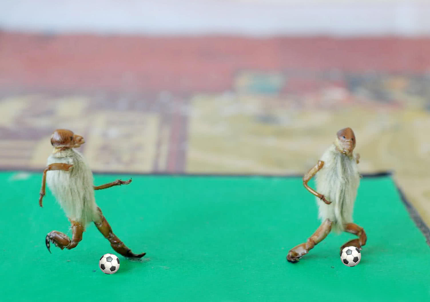 6月14日下午6點在莫斯科盧日尼基體育場盛大開幕。為了傳遞這份體育精神,河南開封68歲老人張振武用蟬蛻、辛夷(玉蘭花蕾)制作了一系列的“毛猴足球”,制作成的“毛猴”造型詼諧有趣,各種踢球動作惟妙惟肖,令人稱奇。