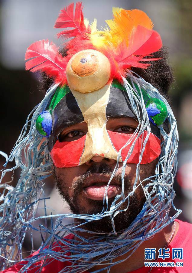 6月24日,在美國(guó)洛杉磯,一名男子戴著面具參加面具節(jié)游行。當(dāng)日,美國(guó)洛杉磯舉行面具節(jié),傳統(tǒng)藝術(shù)家、青年團(tuán)體等通過(guò)面具制作、舞蹈、音樂(lè)表演和游行等表達(dá)對(duì)祖先和傳統(tǒng)的敬意。