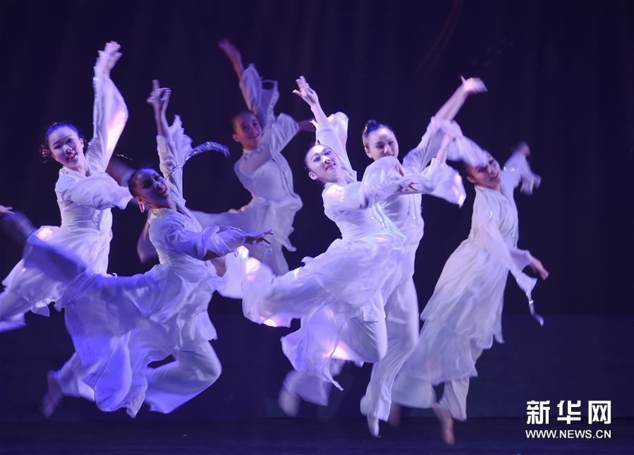 7月4日,在福建師范大學(xué),福建師范大學(xué)音樂(lè)學(xué)院學(xué)生在表演群舞《挽·面》。當(dāng)日,第七屆海峽兩岸青年舞蹈嘉年華開幕式暨海峽兩岸青少年優(yōu)秀舞蹈展演在福建省福州市舉行。該活動(dòng)由福建省文聯(lián)、福建省舞蹈家協(xié)會(huì)主辦,近千名兩岸青少年舞者參加。