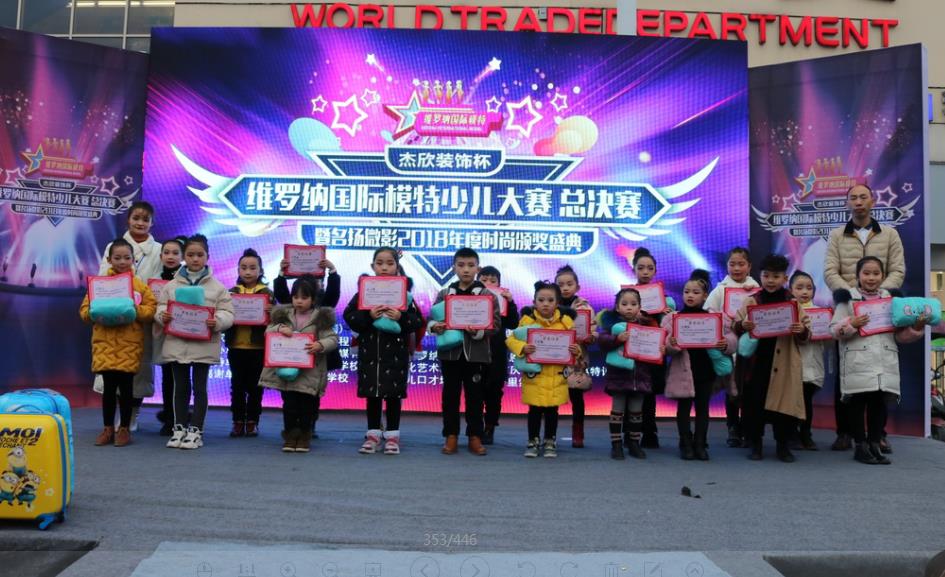 2018年12月23日下午五點(diǎn)三十分,維羅納國(guó)際模特少兒大賽恩施賽區(qū)總決賽在業(yè)州中心廣場(chǎng)圓滿落幕,由時(shí)尚聯(lián)盟(中國(guó))委員會(huì)、恩施名揚(yáng)微影文化傳媒有限公司主辦;建始杰欣裝飾工程有限公司獨(dú)家冠名;湖北煙雨文化傳媒有限公司、維羅納國(guó)際模特大賽恩施賽區(qū)組委會(huì)承辦;舞之韻舞蹈培訓(xùn)學(xué)校、樂(lè)海文化藝術(shù)培訓(xùn)學(xué)校、重慶亮劍拓展軍事特訓(xùn)營(yíng)建始辦事處、金喇叭少兒口才培訓(xùn)學(xué)校、萊茵國(guó)際舞蹈學(xué)校以及十里紅妝婚慶傳媒等大力支持;現(xiàn)場(chǎng)近萬(wàn)名觀眾、多家媒體及千萬(wàn)網(wǎng)友共同見(jiàn)證了這一榮耀時(shí)刻的誕生。