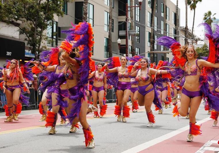 5月26日,舊金山民眾聚集在米慎區(qū)歡度嘉年華。舊金山嘉年華在每年5月的最后一個星期日舉行,參加表演的民眾盛裝出席,向觀眾展示代表自己族裔的歌舞。