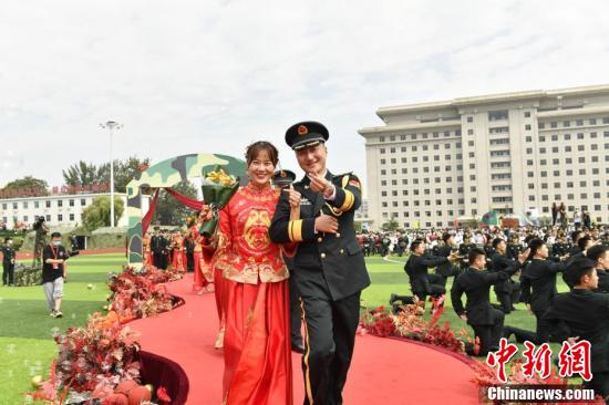 9月20日,諧音“就愛你”,當(dāng)日,火箭軍某部張燈結(jié)彩,喜氣洋洋。該部為101對在一線號位奮戰(zhàn)的指揮員、操作號手在綠色軍營舉辦了一場浪漫而神圣的集體婚禮,為新娘送達(dá)“東風(fēng)聘書”、系列軍事化特色的迎親環(huán)節(jié)、新郎為新娘戴上有火箭軍專屬標(biāo)志的戒指、新娘為新郎佩戴國防服役章……整場婚禮儀式感滿滿,在親友及戰(zhàn)友們的祝福聲中,101對新人在軍營甜蜜結(jié)連理。