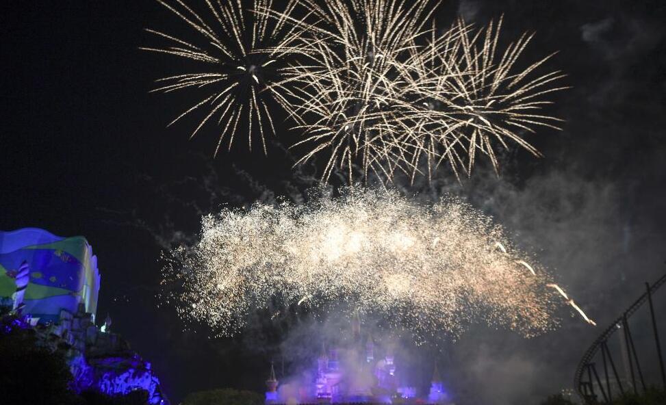 5月2日晚,湖南株洲,當(dāng)?shù)匾患矣螛穲@舉行“二次元”城堡煙花秀,煙花在動畫般的城堡上空綻放,吸引眾多游人駐足欣賞。