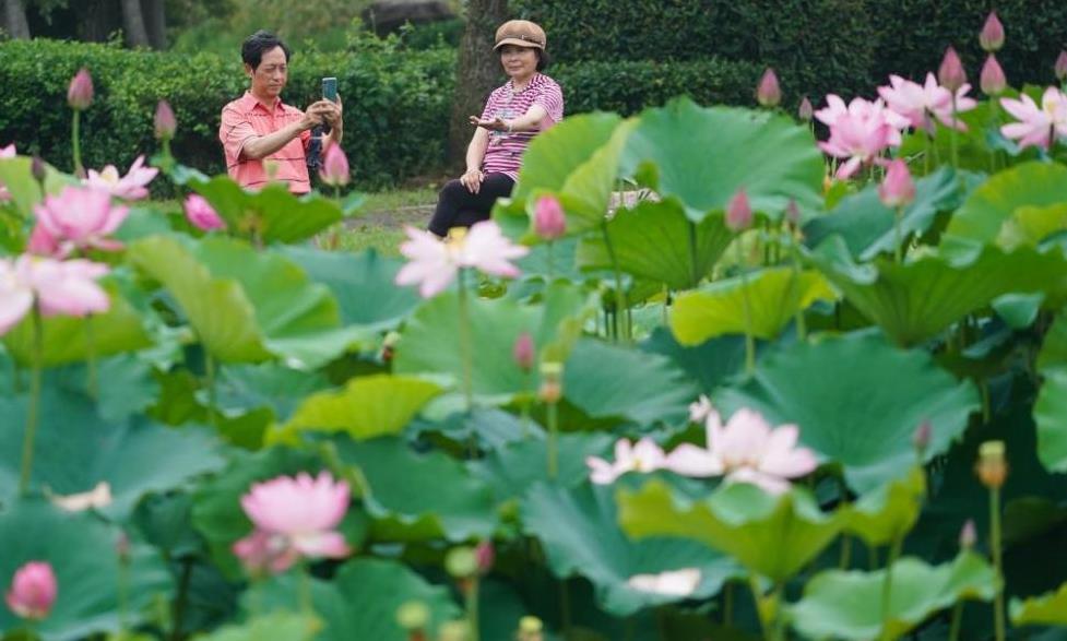 6月18日在蓮花湖公園內拍攝的盛開的荷花。時下,位于江蘇省南京市雨花臺區(qū)的蓮花湖公園內大片荷花陸續(xù)盛開,吸引不少市民賞花休閑。