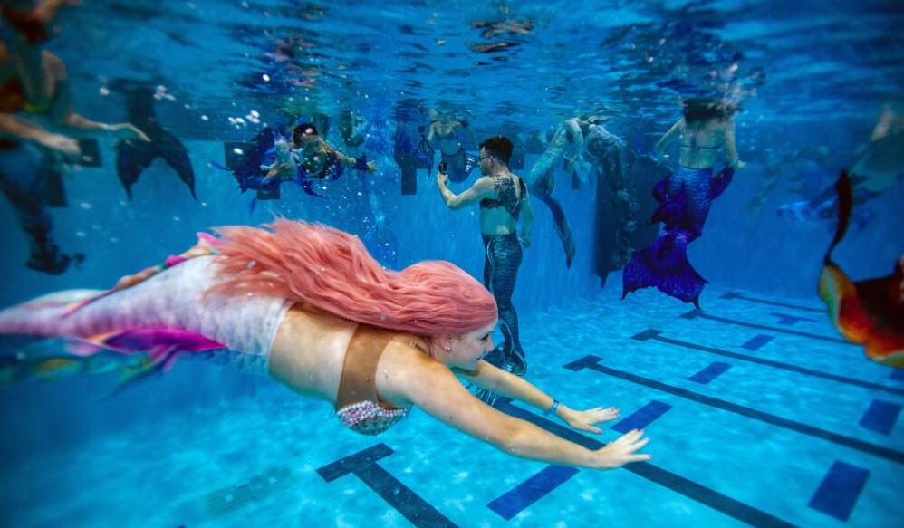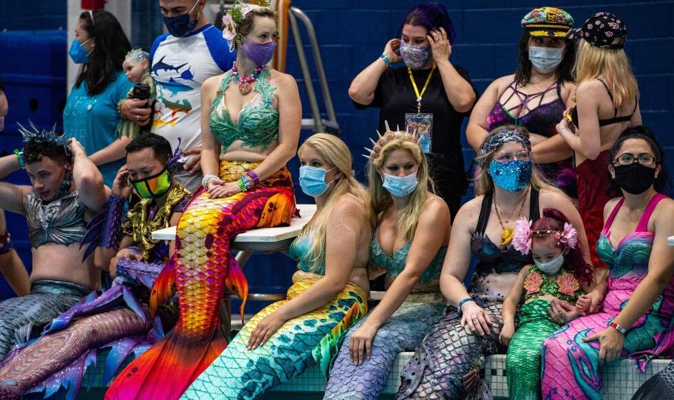 2021年8月7日,美國(guó)弗吉尼亞州馬納薩斯,“美人魚(yú)”參加MerMagic Con的拍照活動(dòng)。MerMagic Con被宣傳為世界規(guī)模最大的“美人魚(yú)大會(huì)”。大會(huì)的好些參與者是模特,看起來(lái)就像美國(guó)“美人魚(yú)”小姐選美大賽。而胖美人魚(yú)協(xié)會(huì)則希望把肥胖人士聚集在一起,宣揚(yáng)任何人都可以成為美人魚(yú)的理念。不過(guò)成為一條“美人魚(yú)”并不便宜,大多數(shù)人在他們的尾巴和服裝上花了數(shù)千美元。